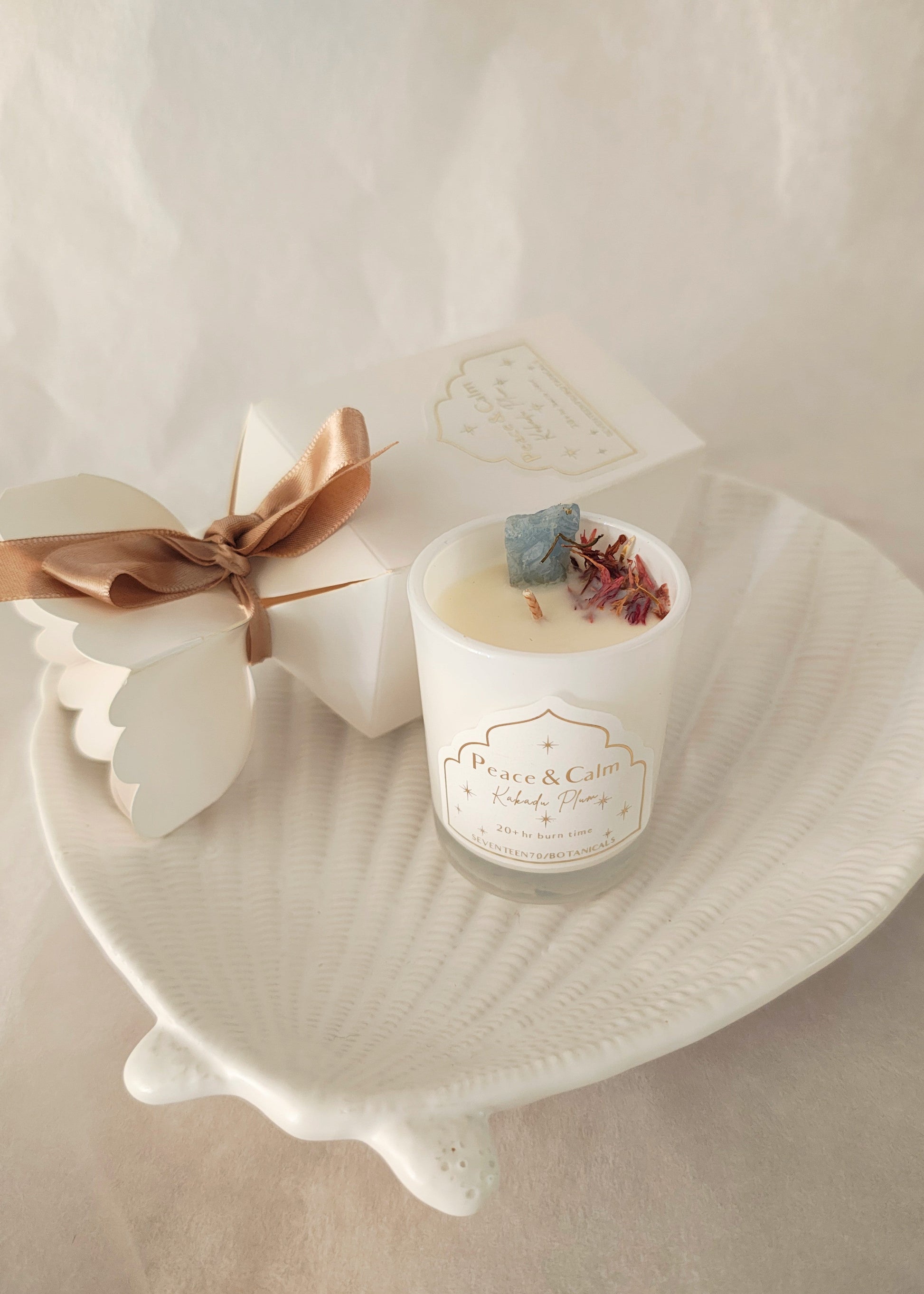 Blending the bright, subtly sweet aroma of native Kakadu plum with the soothing energy of raw blue calcite, Peace and Calm is more than a candle—it’s a sensory reset.
