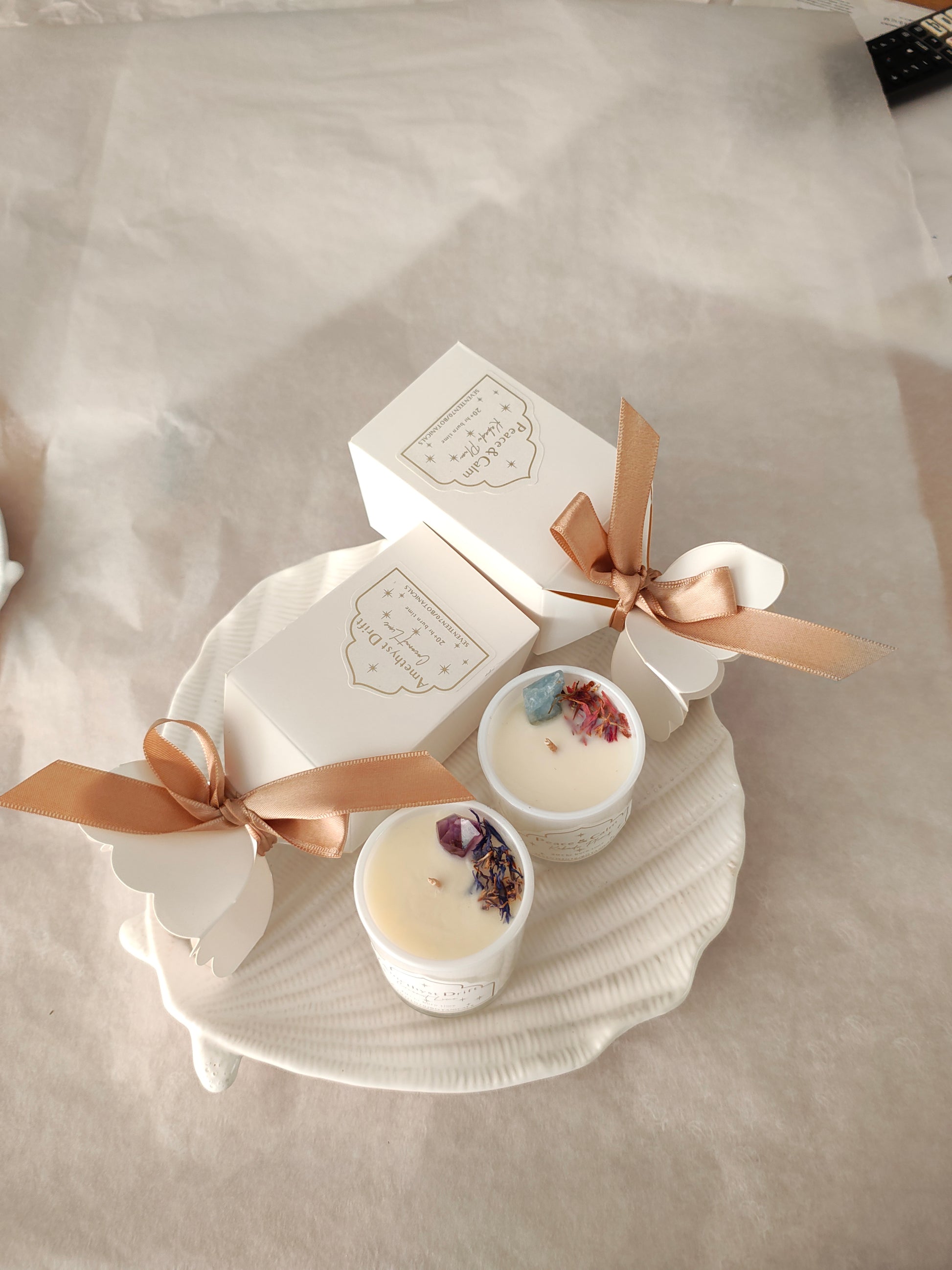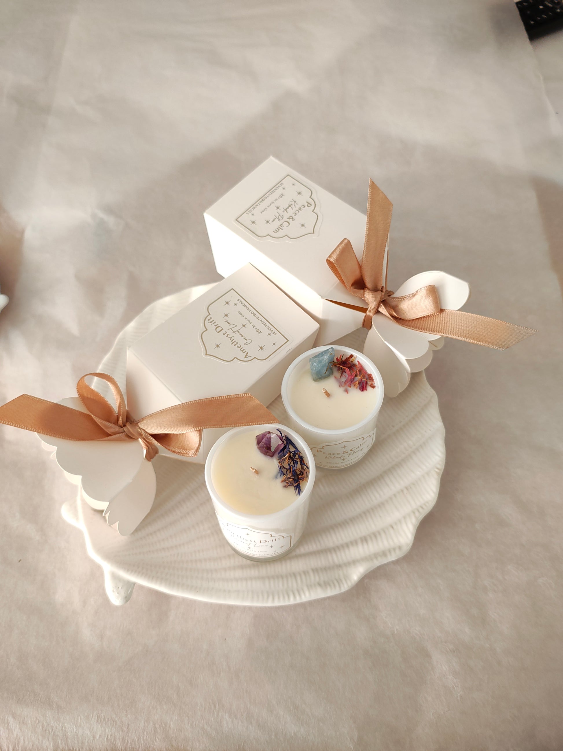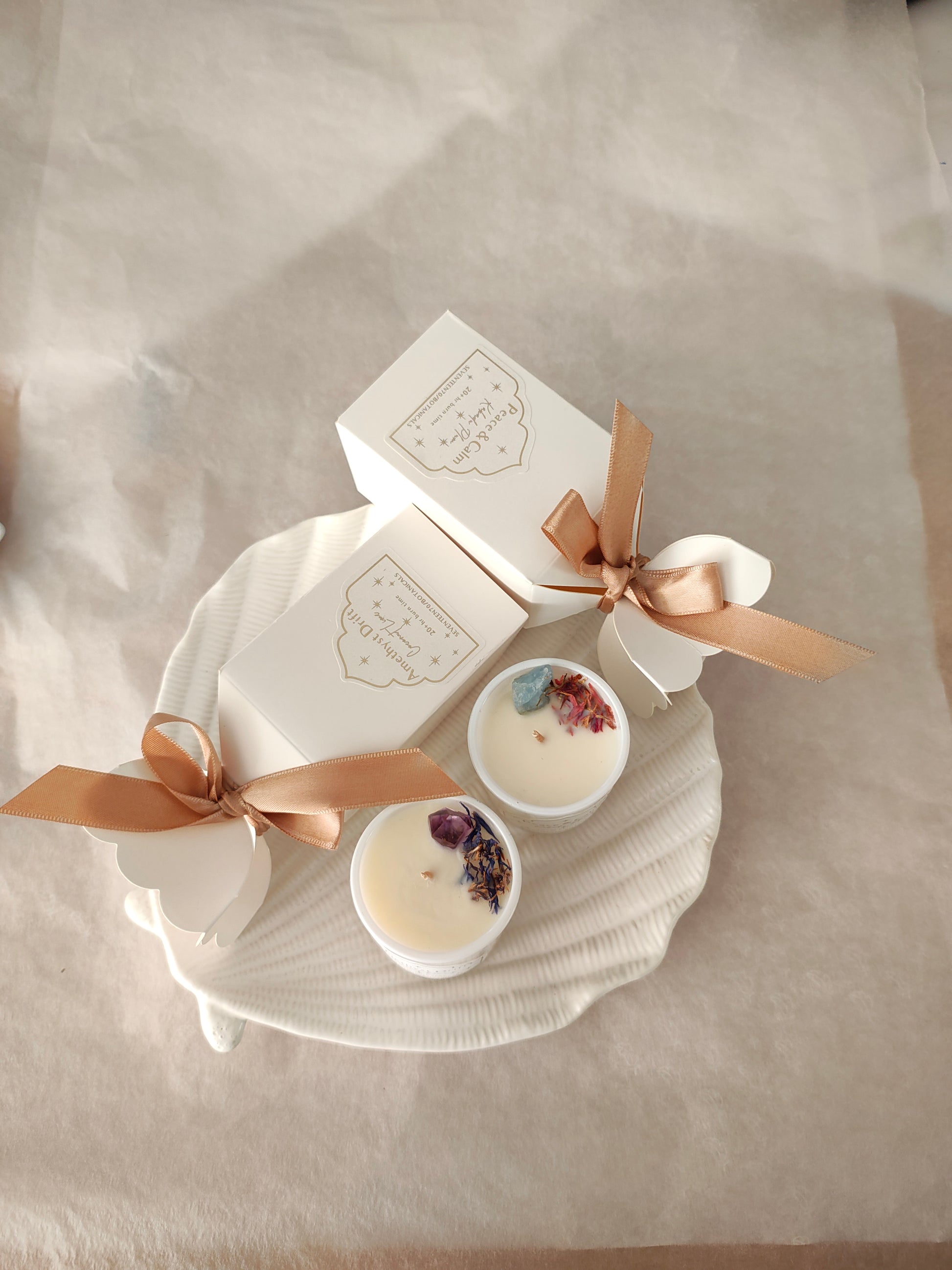 Hand-poured with natural soy wax and lightly infused with plant-based fragrance, this crystal-infused candle brings clarity, calm, and conscious beauty into your space.