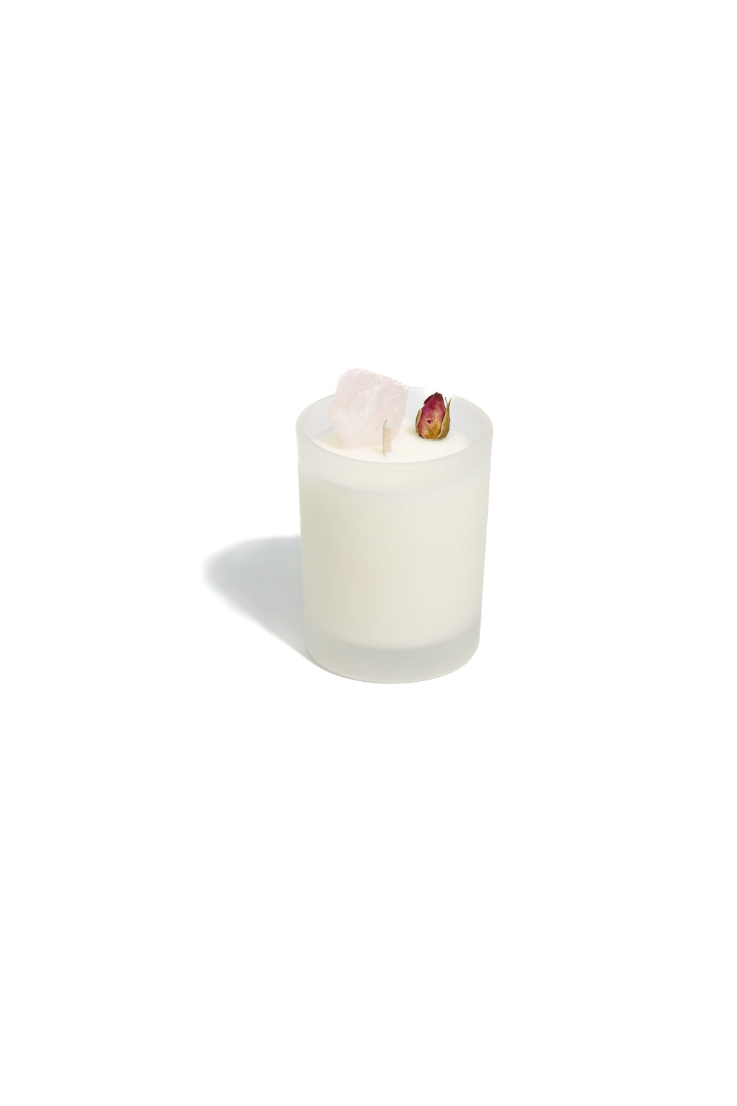 Delicate peony petals meet the gentle healing energy of rose quartz in this heart-centered candle. Crafted with pure soy wax and infused with a subtle floral scent, it’s designed to calm, comfort, and attract love—both inward and outward.